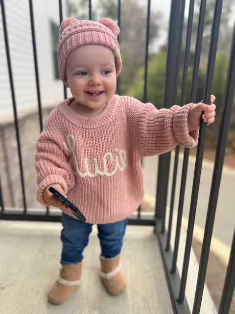We did a little photo shoot with Lucie one day with the sweater I got her from Christmas!